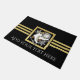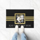 Das Design ist mit einem Eis-Skate über einem Schneeflocken-Wappen mit schwarzem und Imitat goldenem Glitzer-Hintergrund ausgestattet. Dieses elegante Wintersportdesign dient als coole, moderne und einzigartige Türmatte mit personalisiertem Text.