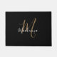 Moderne Black Gold Monogram Chic Girly Script Name Doormat. Personalisieren Sie diese elegante mit Monogramm Türmatte in Schwarz und Gold mit Ihrem Initial und Namen in klassischer Schrift Typografie. Perfektes Geschenk für sie, Bürodekoration Geschenk, Business Geschenk, oder zurück zur Schule Idee.