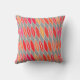 Kissen in einem modernen Design von abstrakten Blätter in den Farben Korallenorange, Korallenrosa und Korallenrot, cremefarben, auf einem mittelgrauen/grauen Hintergrund