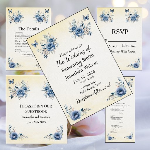 Modern Blue Flowers and Butterflies WeddingDesignt von Clyde Coles