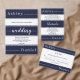 Diese elegante blaue RSVP Karte eignet sich perfekt für eine moderne Hochzeit. Das schlichte Design ist schlicht in Blau-Weiß-Kalligraphie auf einem Hintergrund mit blauen und weißen Streifen.