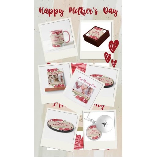 Moderner, niedlicher und blumenreicher Rahmen von Rose in Rot, Rosa und Grün zum Muttertag oder Geburtstag. Sehr feminin und romantisch einzigartiger Stil, genau richtig für Mutter, Großmutter oder Stiefmutter.