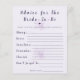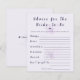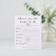 Verleihen Sie Ihrer Feier mit dieser lila Boho-Blumenkarte "Rat für die Braut" eine bedeutungsvolle und unvergessliche Note. Entworfen mit sanften botanischen Akzenten und moderner Typografie, lädt sie die Gäste ein, ihre herzlichen Ratschläge, Wünsche und Ehe-Tipps für die zukünftige Braut zu teilen. Perfekt für Brautduschen wird diese elegante Karte zu einem Erinnerungsstück, das die Braut noch lange nach der Feier in Ehren hält und mit Liebe, Weisheit und nachdenklichen Nachrichten von Familie und Freunden gefüllt ist.