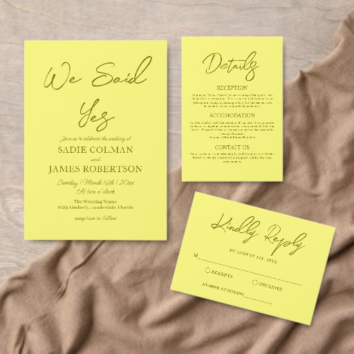 Moderne Buttergelbe Hochzeitdetails Begleitkarte