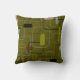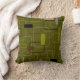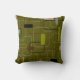 Dieses Kissen hat ein modernes Design von Rechtecken in Grün, Grau, Braun und Schwarz.