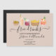 Lässig cool Save the Date, Gratisgetränke, und wir heiraten auch! mit dieser pastellfarbenen Hand bemalten fruchtigen Cocktails, Oliven und knusprigen Illustrationen auf natürlichem Hintergrund.