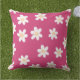 Die Kissen im Freien mit Blumen und Fun sind mit feinem, dunklem Muster auf magentafarbenem rosa Hintergrund versehen. Auch in Innenstoffen erhältlich.