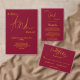Diese elegante Bordeaux- und Goldhochzeit bewahrt das Datum für eine moderne Hochzeit und bietet elegante Goldkalligraphie auf bordeauxrotem Hintergrund.