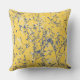 Moderne, elegante blaue Wildblumen auf Mustard Yel Kissen