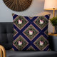 Das moderne Bohemische, florale Navy Blauer Kissen, eine faszinierende Mischung aus zeitgenössischer Eleganz und böhmischem Charme. Vor dem Hintergrund der tiefblauen Marineblau, erstaunliche Blumenmotive in Gold und Schwarz, jedes Quadrat, während ein zentrales Bouquet aus rosa und weißen Rosen, umgeben von üppig grünen Blätter, eine Touch botanischer Laune hinzufügt. Dieses Kissen verleiht jedem Raum mit seinem modernen und zeitlosen Design mühelos eine Note, die raffiniert und botanisch reizvoll ist.