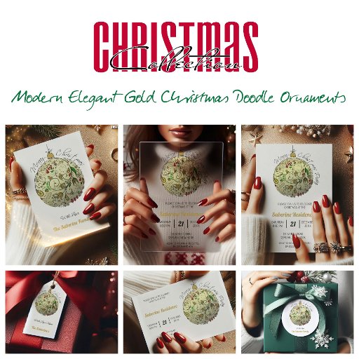 Moderne elegante Gold Doodle Ornament Einladung, mit verschiedenen Weihnachtsdoodles Details in den Farben der Weihnachtspalette, mit handgeschriebenem Retrotext an der Spitze des Ornaments. Diese eleganten Weihnachtsaufkleber eignen sich hervorragend für Umschlag Aufkleber, Geschenkpackungen, Gastgeschenke und vieles mehr! *** Klicken Sie auf die Schaltfläche Bearbeiten/Personalisieren, um dieses Design mit Ihrem persönlichen Text oder Namen anzupassen. Gute Ferien!