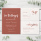 Moderne, elegante Terracotta-Hochzeit Menükarte