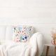 Moderne farbenfrohe Blattmuster Weiß Kissen