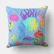 Moderne farbenfrohe Unterwasserkorallen Fisch Blau Kissen