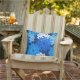 Moderne nehmen ein traditionelles japanisches Kimono-Druckkissen - stilisierte Blume in Kobalt- und Ceruléblau, Aqua und Weiß auf einem dunkelmarinierten/indigoblauen Hintergrund