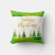 Moderne frohe Weihnachtsbaumen Gold Script Kissen bietet moderne Weihnachtsbäume in Grün und Gold mit dem Text "Frohe Weihnachten" in elegantem goldenen Drehbuch. Ideal für Weihnachtsgeschenke und Urlaubsstimmung. Entworfen von ©Evco Holidays www.zazzle.com/store/evcoholidays
