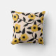 Moderne Gelbe Blumen Schwarzes Blätter Muster Kissen