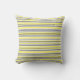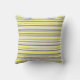 Dieses moderne Kissen weist dünne Streifen in Gelb, Weiß und Grau auf.