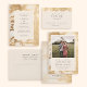 Machen Sie eine Erklärung mit dieser auf Folie akzentuierten Hochzeitseinladung. Es besticht durch eine moderne, minimalistische Typografie, eine sanfte, beige cremefarbene Farbpalette und einen goldfarbenen abstrakten Aquarell mit luxuriösen Goldakzenten. Ihre Hochzeitsdetails stehen im Mittelpunkt der Bühne.