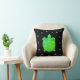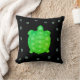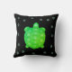Moderne künstlerisch grüne Schildkröte und Blume auf schwarzem Kissen.