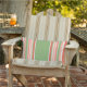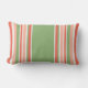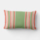 Dieses Kissen im Freien mit Lendenwirbel weist senkrechte Streifen unterschiedlicher Breiten in Spargelgrün, hellen und dunklen Korallen und weißlich auf. Ein ideales Sommermuster für Patio, Deck oder Veranda.