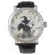 Uhr, Vintage Männeruhr mit schwarzem Lederarmband