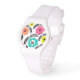 Moderne und fette Blume in Sommerfarben mit schwarzer Blattdekoration auf personalisierter Uhr.