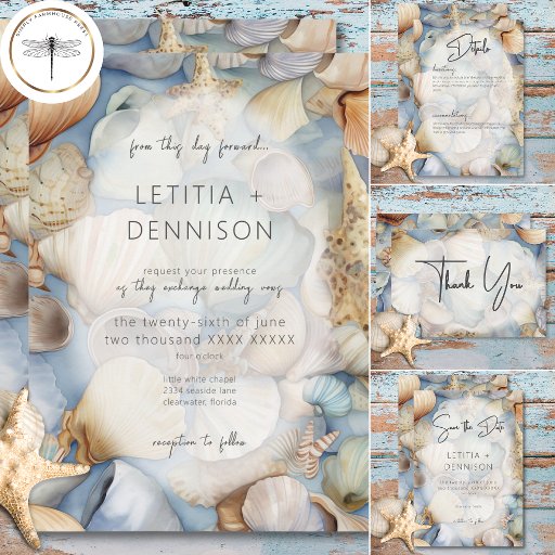 Tropical Seashells Scene Modern WeddingDesignt von Kathe Santillo