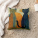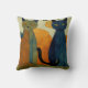 Attraktive, impressionistische Vision von zwei stilisierten Katzen in blau, grün und rostfarben auf einem Kissen werfen.