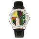 Uhr, Vintage Männeruhr mit schwarzem Lederarmband