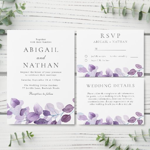 Moderne Lavendel-Lila Blätter Hochzeit Akryllische Einladungen Siehe Entsprechungen in unserem Nest- und Nestladen