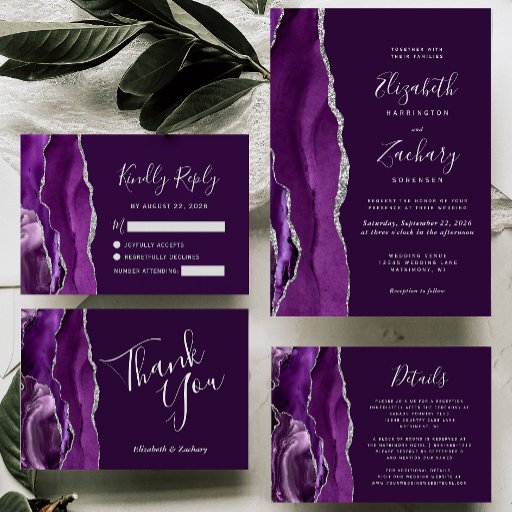Modern Deep Purple Silver Agate Wedding SuiteDesignt von Akhates Designs