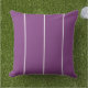 Ein modernes und minimalistisches gestreiftes Kissen im Freien in lila und weiß.