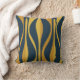 Moderne Retro Lounge im Mittelalter gestreiftes Ogee-Muster in Navy Blue und Mustard Throw Kissen. Zeitgenössisches Mitte des Jahrhunderts Mod abstraktes Design; funky 50er 60er 70er ästhetisch. Reiche Farben. Elegante, lebendige, schicke Wohngestaltung. Von Kierkegaard Design Studio.