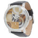 Uhr, Vintage Männeruhr mit schwarzem Lederarmband
