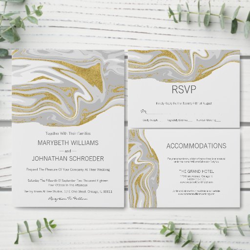 Moderne Marmor & Gold Hochzeitsfeier Einladungsbanderole (Personalisiere diese Kollektion eines unabhängigen Creators.)Moderne Marmor & Gold Hochzeitsfeier Einladungsbanderole (Rückseitenbeispiel)Moderne Marmor & Gold Hochzeitsfeier Einladungsbanderole (Flach)