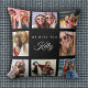 Individuelle Foto-Collage werfen Kissen mit modernen Skripttypografie und Raum für 8 Lieblings-Familie Fotos.