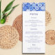 Lassen Sie Ihre Gäste durch die Saphirfarben Ihres besonderen Tages mit Tischkarten führen, die moderne Serifen mit einem lässigen Layout verbinden. Jede Karte ist ein Mini-Wandgemälde, das die ruhige Schönheit eines mediterranen Horizonts widerspiegelt.