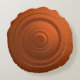 Ein modernes und dennoch einfaches metallisches Design, in dem sich ein System von goldfarbenen/orangefarbenen Kreisen von der Mitte ausdehnt. Es gibt auch eine gewisse Tiefe mit Licht und Schatten. Die solide Hintergrundfarbe, die in kleineren Teilen glänzt, ist auf der Rückseite des Kissens dunkler.