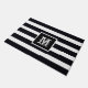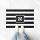 Moderne Mit Monogramm Erstklassigkeit klassisch schwarz und weiß gestreifte Außentür. Klicken Sie auf diese Vorlage personalisieren, um sie mit Ihrem eigenen Monogramm zu erstellen, das Sie schnell und einfach erstellen können. Weltweit schnell verschickt. Moderne Mit Monogramm Initial Elegant Schwarz-weiß Doormat. Erstellt von RjFxx © *Alle Rechte vorbehalten. #monogramOutdoorDoormat #BlackAndWhiteOutdoorDoormats #ZazzleMade
