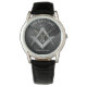 Stilvolles silbernes Quadrat und Kompass Masonic Symbol personalisierte Uhr mit eleganter schwarzer Uhr Gesicht.