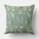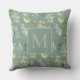 Moderne Monogram Sage Green Silver Blätter Foliage Kissen