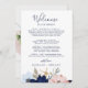 Diese moderne nautische Begrüßungstour und Kartenkarten sind perfekt für eine Begrüßungstasche für die Hochzeit in Urlaubsort. Das skurrile Design ist in Rosa und Marineblau gehalten, die Blume sind mit goldgelben Sternenakzenten versehen und verleihen dem Hotel ein angenehmes Ambiente. Auf der Vorderseite der Karte finden Sie einen Begrüßungsbrief und eine Reiseroute. Geben Sie eine Karte Ihres Resorts mit den wichtigsten Orten auf der Rückseite der Karte an.