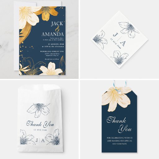 Moderne Navy Blue Blume Chic Hochzeitseinladung Einladung