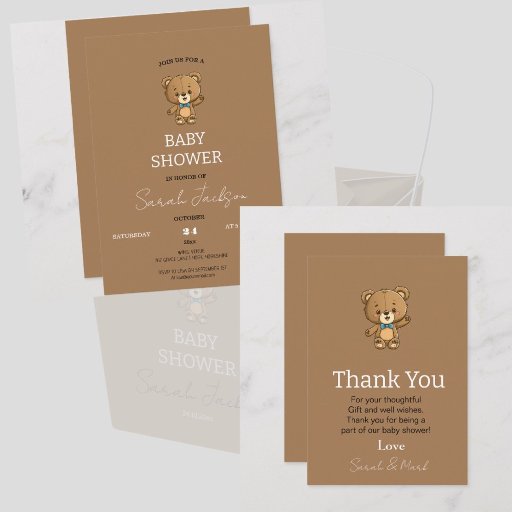Moderne Niedlich neutrale Teddy Bear Baby Dusche Einladung