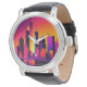 Uhr, Vintage Männeruhr mit schwarzem Lederarmband