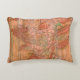Moderne orangefarbene Blütendrucke auf gestreiftem Zierkissen