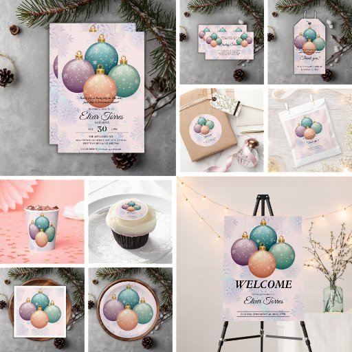 Die moderne Pastel Christmas Ornament Baby Shower Collection verbindet sanfte, ruhige Pastelltöne mit festlichem Urlaubsszauber für eine Babydusche, die sich sowohl elegant als auch gemütlich anfühlt. Mit pastellfarbenen Weihnachtsschmuck, zarten Schneeflocken und subtilen Wintergärten schafft diese Kollektion eine warme, elegante Atmosphäre, die perfekt zum Feiern der bevorstehenden Ankunft ist. Wenn Sie ein anderes passendes Produkt oder eine Anpassung benötigen, wenden Sie sich bitte per E-Mail an Zazzle.