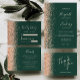 Die links Kulisse dieser modernen Hochzeitseinladung besticht durch ein Glitzer-Design mit Pfirsichfarben. Der anpassbare Text kombiniert blasspfirsichfarbene Handschrift, Copperplate und kursiv Schriftart auf einem smaragdgrünen Hintergrund. Auf der Rückseite befindet sich ein passender Pfirsichpfirsichbau und smaragdgrünes Design.