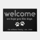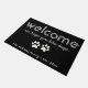 Personalisiert moderne "Willkommen. Wir hoffen, dass Sie Hunde mögen" Türmatte in Schwarz-Weiß.